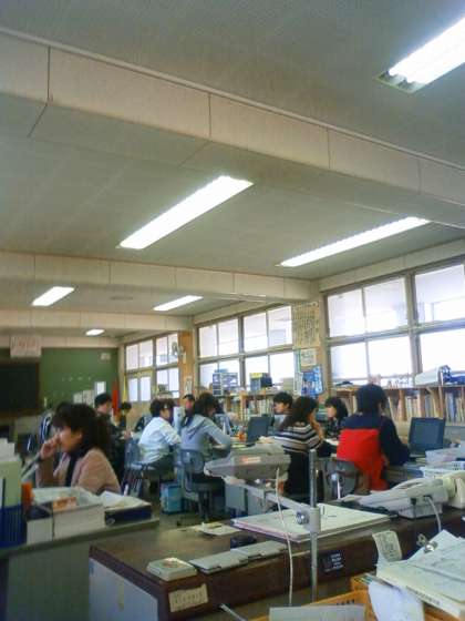 おはようございます!! 桜の季節。こどもたちは,高学年の班長を先頭に,集団登校で桜吹雪の中を登校してきます。昨日の会議は職員室で行いました。それぞれ,ノートパソコンをのぞいて提案を聞いています。