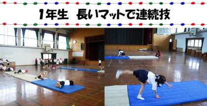 2つを組み合わせたり,できる技を連続で回ったりして長いマットを楽しみました。