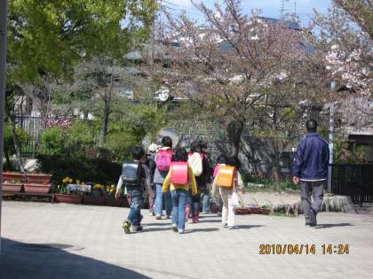 今日は,22年度最初の町別集会がありました。町別で下校する際に,並びやすいように教職員の手作りで,町別がわかるように町の名前が書かれた札を校舎に取り付けました。緊急時も使えると思います。今日は晴れてよかったです。