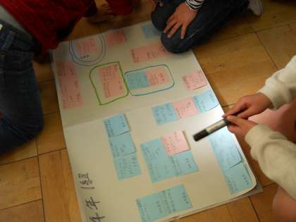 次に,貼り付けた付箋紙をグループ分けして整理し,そこから見えてくるそれぞれの班のエコ目標を考えました。