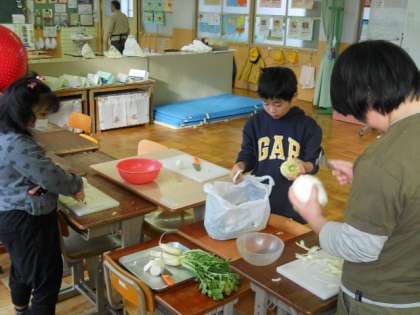 学校では高学年中心に調理実習をし,大根炊きをしました。