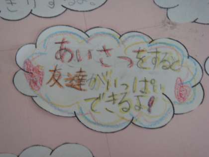 今月の美豆なかよしタイムのテーマは『あいさつをしよう』がテーマです。6年生では,「あいさつすると,こんないいことがあるよ」を考えました。