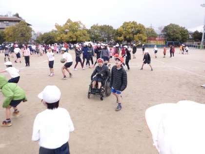 たてわりの班ごとにチームを作るので,つばさ学級のみんなもそれぞれのたてわり班で活動しました。