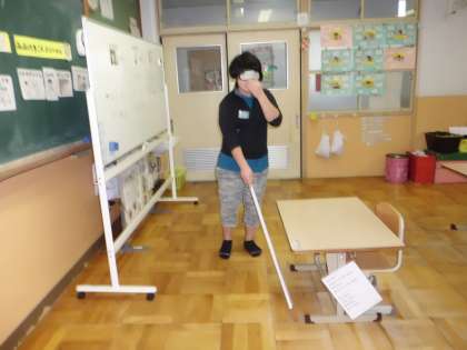 「目の見えにくい人」「歩きにくい人」「耳の聞こえにくい人」について,どのようなものを使いながら社会の中で生活しているのか学びました。