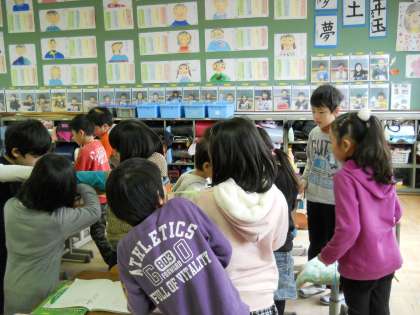 1メートルがどれくらいの長さなのかをものさしを使わずに紙テープで表しました。その後,誰の紙テープが1メートルに一番近いか,実際にものさしで測って確かめました。