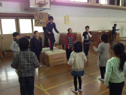 体育館には,6年生たち自身が考えて準備をしたブースがたくさん並び,昼休み開始のチャイムとともにたくさんの下級生が遊びにきてくれました。6年生は「こうやって遊ぶんだよ」「こっちに並んでね」と優しく声をかけ,イベントを盛り上げていました。