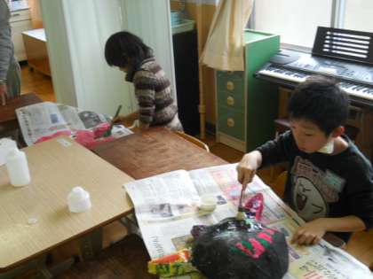 丁寧に色を付けたり,ニスを塗ったりして,最後までこだわってつくりました。
