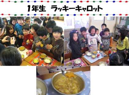 給食週間の最終日は,ラッキーキャロット入りのブラウンシチューでした。