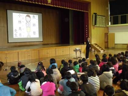 続いて,教師塾(教員を目指す者が学校現場で経験を積み,将来にいかす取組)の先生の紹介をしました。2月24日まで4年を中心にして美豆小学校で活動されます。