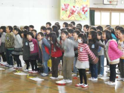 ずっとずっとなかよしでいたいな♪という願いをこめて歌のプレゼントをしました。6年生が曲に合わせて体を揺らしてくれるうれしい姿を見ることができました。みんなのすてきな歌声が6年生に伝わったことでしょう♪