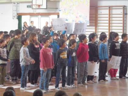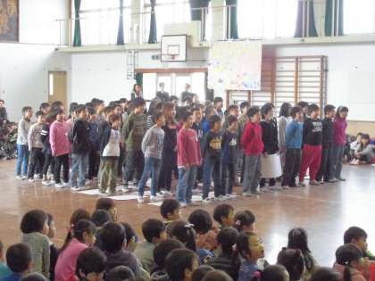 6年生を送る会がありました。3年生は,「3択クイズ」と「ありがとう6年生の歌」で6年生へのこれまでの感謝の気持ちを伝えました。