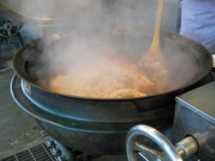 今日の給食は,台風にそなえて学校で保管しておいたまぐろフレークや缶詰,乾燥野菜を使って作りました。“炊きこみ五目ごはん”は学校に保管していた米を使って給食室で炊きました。