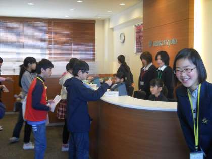 今日のスチューデントシティ学習で,子どもたちはとても素晴らしい姿をたくさん見せてくれました。一人一人がそれぞれの会社,職種で一生懸命与えられた仕事に取り組み,元気よく声を出したり,書類作成を行ったり,商品説明を行ったり,本当によく頑張っていました。たくさんの方からも『とても頑張っていて,素敵な子どもたちだ。』とお褒めの言葉をいただきました。