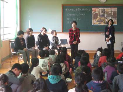 地域の方に来ていただいて,昔のくらしや昔の遊びについて教えていただきました。社会科の学習でまだ残っている疑問を質問したり,昔の遊びを楽しんだりしました。