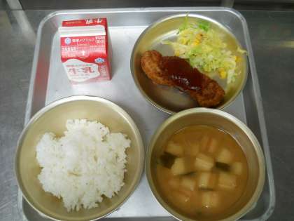 3月11日の献立は,「ごはん・牛乳・トンカツ・ソテー・みそ汁」でした。