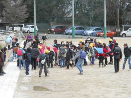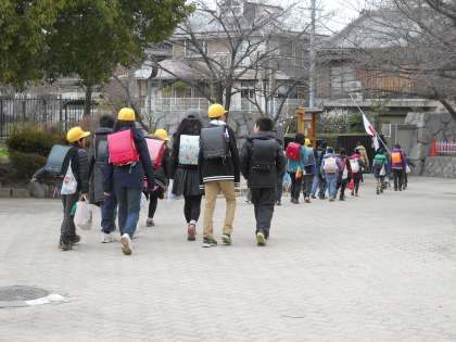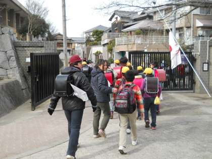 町別児童会に参加いただいたPTA地域委員の皆様方には深く感謝申し上げます。集団登校の問題点を出し合ったり新班長を選出したり新1年生も含めた名簿を作成したりしていただきました。その上,こんな寒い中,集団下校にもお付き合いいただきました。本当にありがとうございました。