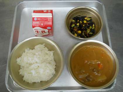 3月12日の献立は,「ごはん・牛乳・カレー・ひじきのソテー」でした。
