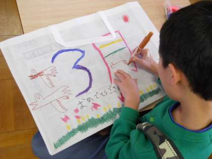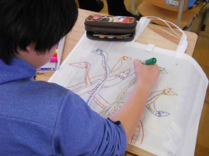 1年間描きためた絵画作品を持ち帰るための,作品バッグを作りました。