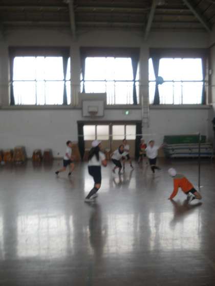 今,体育では,外でサッカー,中(体育館)でソフトバレーボールをしています!