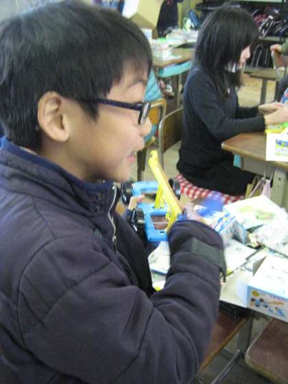 理科の学習で学んだことをいかしておもちゃ作りをしています。「風やゴム」「豆電球」「磁石」それぞれの性質を思い出しながらおもちゃ作りをしています。