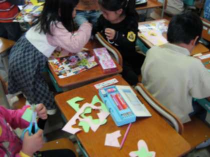 先日に引き続き,図工ではさみを使って造型遊びをしました。