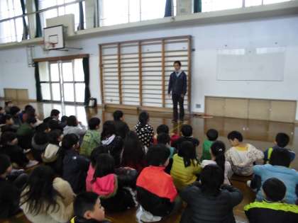 4時間目に,4年生全員が体育館に集まって学年集会をしました。初めに,学年目標と学校のきまりを全体で確認し,みんなで共通理解してから,その後は1組対2組でドッジボールをしました。この一年,学年目標の「全力・協力・底力〜あきらめないで最後まで」を全体で意識して,素敵な一年をつくっていきたいです。