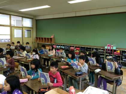 正しい姿勢で、抑揚をつけながら音読することができました。