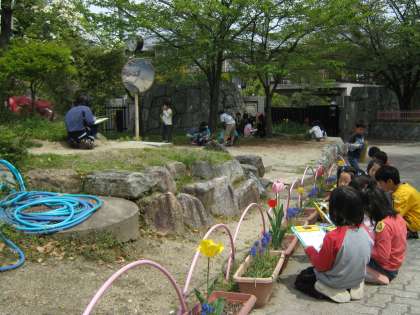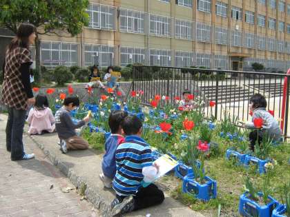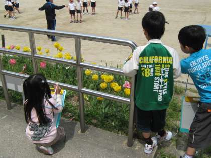 ポカポカいいお天気で,子どもたちは好きなお花を見つけて観察していました。