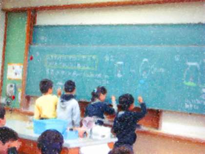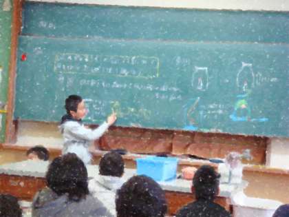 今日の理科では,ふたをしたびんの中では,なぜ火が消えてしまうのかについて調べました。まずは予想を立て,みんなに発表します。絵や言葉などでわかりやすく説明していました。