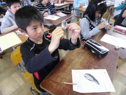 理科の学習でひまわりのたねの観察をしました。