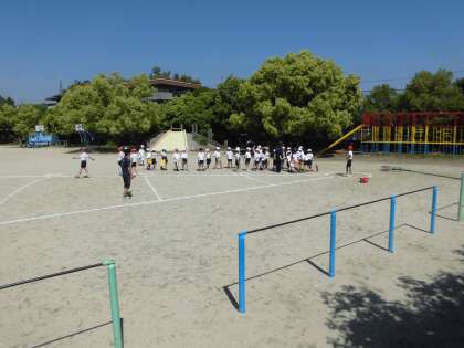 爽やかに広がる青空の下,運動場と体育館でスポーツテストが行われました。