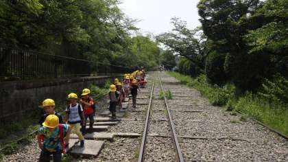 4年生になってから学習することですが、「ここは昔なにがあったところかな?」とみんなで予想しながらインクラインを通りました。