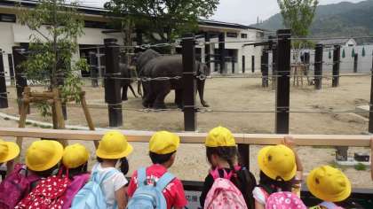 途中、動物クイズをしたり、急に動き出した象にビックリしたり、カバの口の大きさに驚いたりしました。