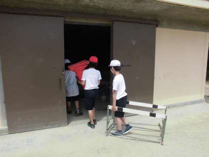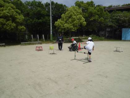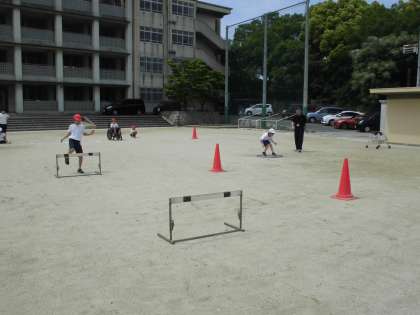 今回は,低学年はけんけんぱやボール運び,高学年はハードルなどに取り組みました。