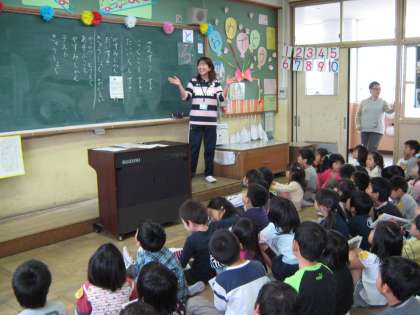 1年生全員で児童会の歌「なかよしいっぱい」と