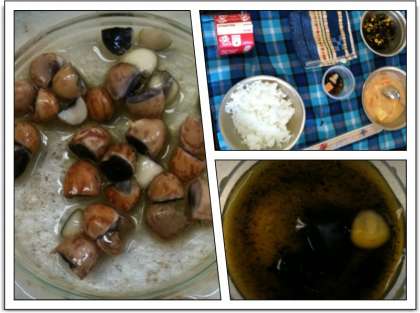 おおっ!なんと,みごとなヨウ素でんぷん反応!いろいろなものが青むらさき色になりました。