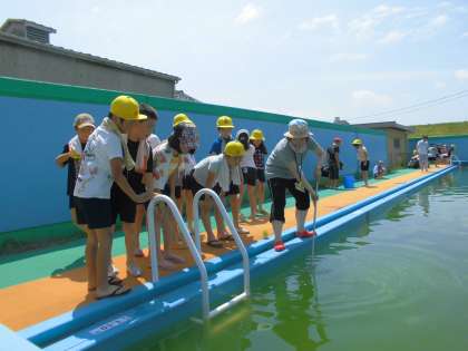 6月1日,プール清掃前のプールでヤゴ取りをしました。