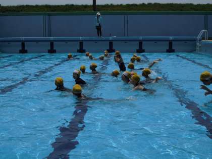 良い天気の中,子どもたちの歓声がプールに響いていました。