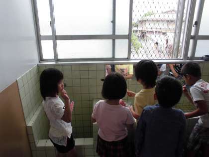 1年生も給食時間ギリギリまで食べている子が少なくない中で,頑張って歯磨きをしています!