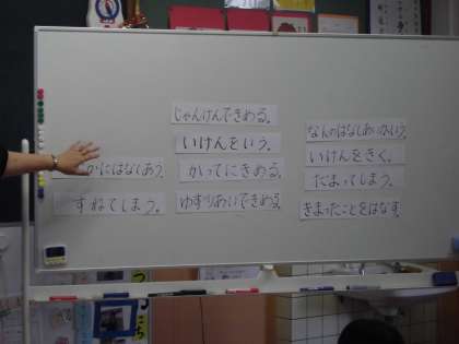 しかし,いろいろな場面で順番や何をするか決める時,誰でも話し合いに参加して司会ができるように,話し合いでは何が必要か,やり方をを確かめました。