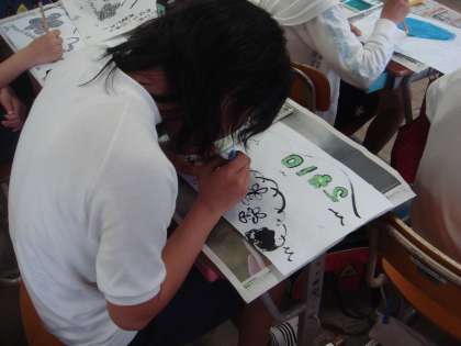 修学旅行で心に残った一場面を描いています。今回は墨を使って,和紙に描いています。なかなか味のある作品が出来そうです。来週の自由参観の際に,是非ご覧下さい。