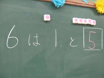 算数では数図ブロックを使って,いくつといくつの勉強をしています。