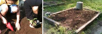 教室で発芽させ,屋外で太陽の光を浴び,たくましく育ったトウモロコシの苗を植えました。100ほどの苗を植えつける予定です★彡!