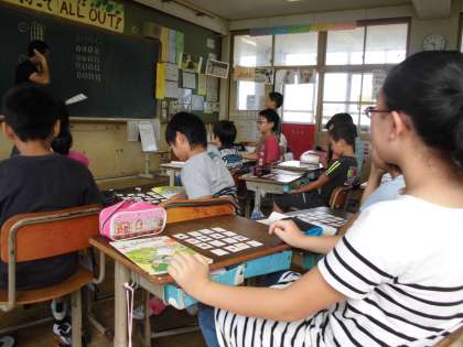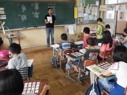 今日は夏休み明けで初めて,マカタンタン先生と外国語の学習をしました。子どもたちは色と形の言い方を確認し,ビンゴゲームをしました。英語を使ったコミュニケーションに意欲的に取り組み,とても楽しそうな様子でした。