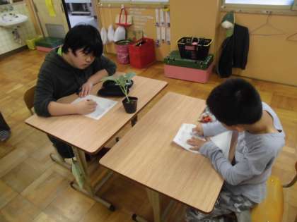 今日はブロッコリーの苗を観察しました。
