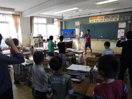 今日は「ようかいウォッチ体操」で体ほぐしを行ってから,各学年の内容に合った学習プリントを始めました。