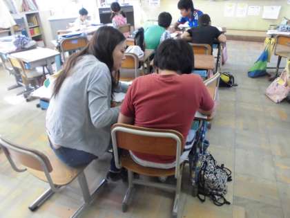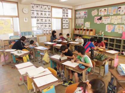 児童1〜3人に先生が一人ずつという少人数で学習します。どの子もあせることなく自分のペースでじっくりと学習に向かえていました。