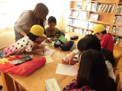 封筒の中に入った問題の答えを,本の内容から探したり,本の中から見つけた答えをビンゴ形式のカードに記入するという楽しい活動に取り組んでいます。