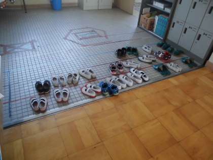 図書ボランティアさんが入り口にテープを貼ってくださいました。
