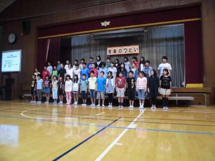 美豆小6年生児童の美しい歌声が大淀中学校の体育館に響きました。